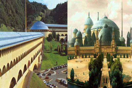 Ну а все поклонники "Звездных войн" сразу же узнают в здании синие купола и зубчатые крыши внеземной архитектуры Набу. Да Джордж Лукас и не отрицал, что когда пришло время придумывать планету, влияние на него оказал именно этот проект Фрэнка Ллойда Райта.