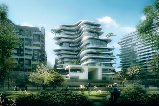 Одним из подобных амбициозных проектов стало жилое здание во французской столице. Плавные линии многоуровневого жилого комплекса будут выгодно выделять его среди других бетонных «коробок».
