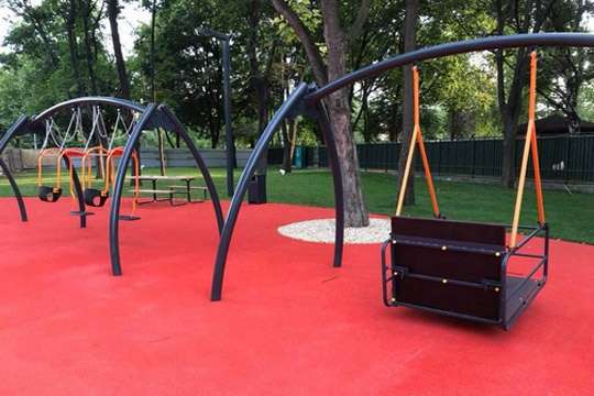 В парке есть специальные качели, на которые можно заехать на коляске, и безбарьерная карусель. Также имеется разноуровневая песочница, шахматные столы, музыкальные инструменты, лабиринт из живых кустов и множество игровых элементов, направленных на развитие памяти и скорости реакции.