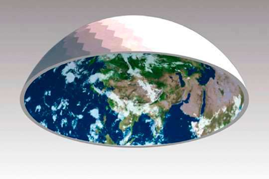 …Оболочка шара, имеющая в сечении 20 метров, позволяет рационально разместить систему скоростных лифтов, монорельсовых дорог, экскурсионных подвижных тротуаров, благодаря которым участники собраний будут доставляться непосредственно на нужные трибуны. Здесь же, находятся подсобные помещения, связанные с техническим обслуживанием центральной части дворца, фойе, буфеты, комнаты отдыха, обзорные площадки и т. д….