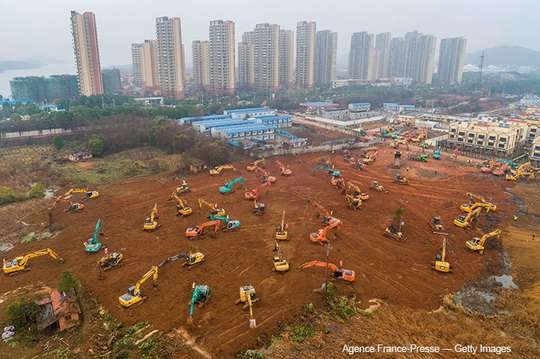 Можно только восхищаться скоростью, с которой отреагировало правительство страны на новую угрозу: 7 тысяч рабочих и армия спецтехники работали круглосуточно. У всех еще в памяти вспышка атипичной пневмонии 2003, когда была построена больница всего за неделю!!