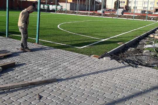 Речь идет о дополнительных демонтажных работах, в частности, разборке асфальта, беговых и пешеходных дорожек, бетонных фундаментов и ограды из панелей, ограждении всей территории и площадки с искусственной травой, а также мощении плиткой и установке металлической ограды на лестнице, ремонте системы водоотведения, дополнительных работах по освещению территории, обустройству системы видеонаблюдения и т. д. Работы должны завершить до конца мая.