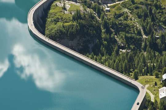 Эта сказочная плотина расположилась между двумя горами Швейцарии – Грам-Конбен и Ла-Ринте. Сдерживаемое водохранилище Мавосин выглядит как настоящее горное озеро: обладает лазурным цветом и кристальной чистотой. Первоначальная высота платины достигала 237 метров, но затем было достроено ещё 13, итого – 250 метров.