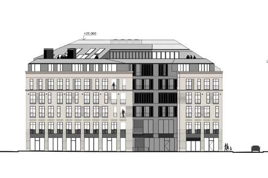 На участке строят гостиницу высотой 25 м. После согласования строительства застройщик провел закрытый архитектурный конкурс, на котором победила польская компания Kurylowicz & Associates.