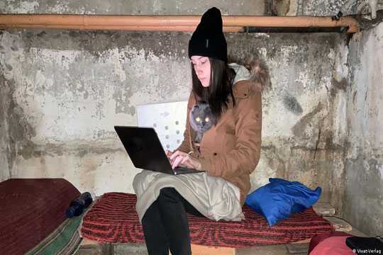 Те же, что остались, продолжают работать - в "домашнем офисе", который основную часть времени располагается в бомбоубежище.