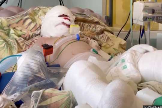 "Ожоги около 40% тела, из которых 35% - это глубокие ожоги. То есть, ожоги, задевающие все ткани, включая кости. Самое худшее - это тяжелые ожоги дыхательных путей. Комбинированная ингаляционная травма усугубляет ситуацию в разы", - говорит заведующий отделением львовской больницы Ярема Безниско.