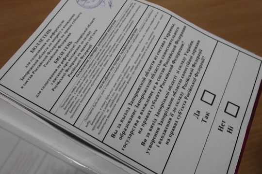 Так называемые референдумы проходили без присутствия независимых наблюдателей и журналистов. Судя по появившимся в сети видео, организаторы голосования ходили по квартирам в сопровождении людей с автоматами.