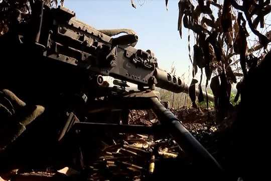 Возле американского пулемета, нацеленного на оккупированную украинскую степь, несколько десятков гильз. Боец с позывным "Швед" говорит, что патронов хватает. Используют в основном для стрельбы по технике противника: "Это если мы "бэху" видим. Или еще если будут наступать, то потом используем. Или если у них минометы работают, то мы их приглушаем, чтобы успокоились".