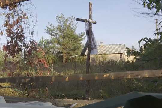 Местный житель Владимир Шутько рассказывает, что его супруга Валентина погибла от взрыва прилетевшего снаряда. Жену он похоронил рядом с домом.