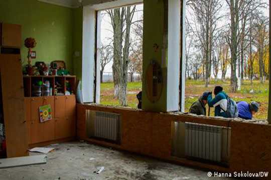 В школе кое-где выбиты стекла и двери, местами повреждена крыша.