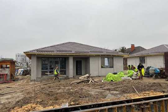 Восстановление домов проходит на улице Вокзальной, по которой шла тридцатикилометровая колонна российской техники. В ходе активных боевых действий большинство инфраструктуры было разрушено.