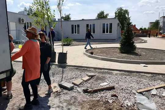 По iнформацiї ProfiDOM.com.ua, на мiсцi за допомогою українських робiтникiв звели фундаменти, допомiжнi примiщення та бомбосховища. Дитячий садок вiдкриє свої дверi на початку червня. Пiсля другого етапу робiт в садочку зможе розмiщуватися 160 дiтей.