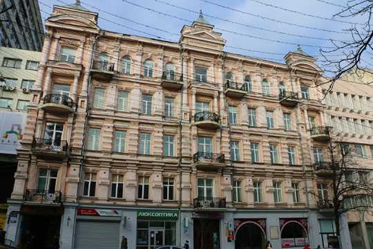 По информации ProfiDOM.com.ua, гостиница была построена в 1902-1904 гг. по проекту известного столичного архитектора Андрея Фердинанда Краусса. Тогда в здании обустроили одну из лучших гостиниц города "Эрмитаж", где останавливались многие известные люди, одним из которых был Михаил Грушевский. Владельцем дома был миллионер Яков Бернар.