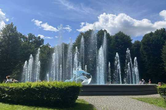 По iнформацiї ProfiDOM.com.ua, торiк скульптуру водограю пошкодили вiдпочивальники, якi намагалися вилiзти на лебедiв.