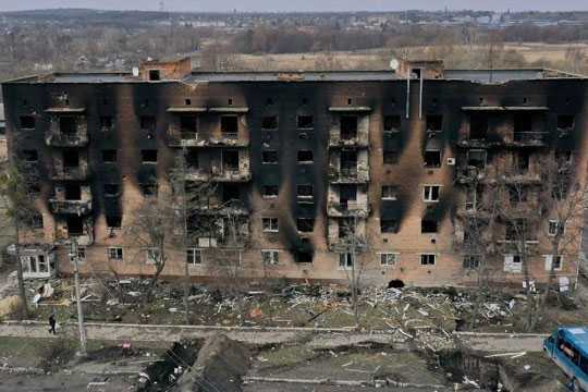 Минулого року пiд час виходу з мiста росiйськi вiйськовi прицiльним вогнем обстрiляли з кулемета багатоквартирнi житловi будинки. Внаслiдок влучання боєприпасiв та пожеж будiвлi майже вщент зруйнованi.