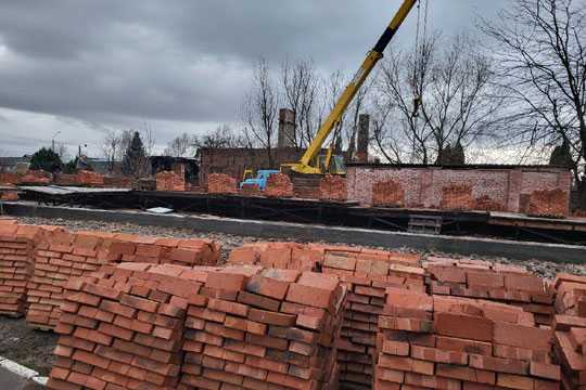 Пошкодженi конструкцiї старої будiвлi вже демонтували. Харчоблок пiсля вiдновлення буде втричi бiльший за площею - 416 кв. м. Також змiниться планування. За проєктом тут передбаченi тамбур, вестибюль, гардероб, санвузли, обiдня зала на 60 мiсць, кухня та мийна з технологiчними зонами, технiчнi примiщення для персоналу, склади для продуктiв та комора для iнвентарю та посуду.