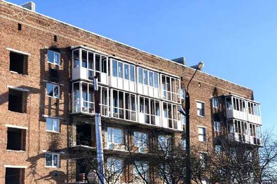 У п'ятиповерхiвцi на вул. Благовiщенськiй, 53, будiвельники вiдновили дах, встановили монолiтнi залiзобетоннi перекриття, замiнили пошкодженi плити, змонтували вiкна. Наразi проводимо монтаж балконних рам та мiжкiмнатних перегородок.