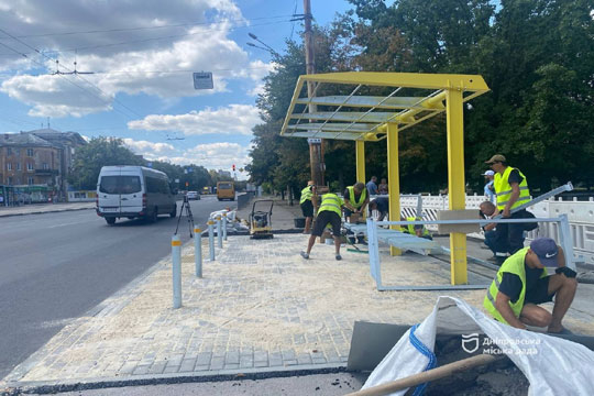 У Днiпрi продовжують встановлювати сучаснi зупинковi комплекси. Зараз працюють по вул. Робочiй.