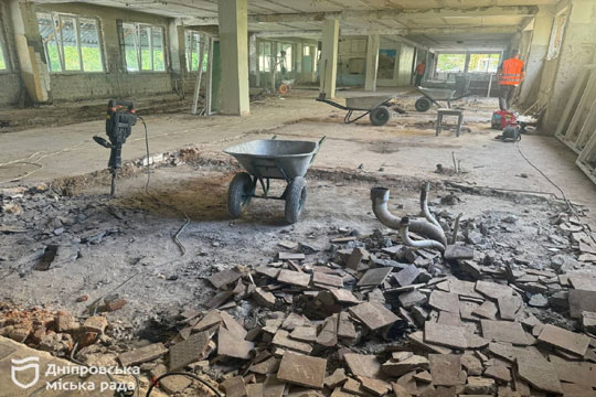 "За два мiсяцi ми майже завершили демонтажнi роботи i зараз розпочинаємо будiвельнi. Наразi бачимо монтаж металопластикових вiконних блокiв, крiм цього тут закладуємо проєми цеглою та газобетонними блоками. Роботи триватимуть 16 мiсяцiв, згiдно з проєктною документацiєю", - зазначив iнженер технiчного нагляду Юрiй Шаталов.