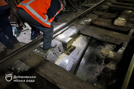 У Днiпрi з настанням ночi у метро розпочинають ремонтнi роботи. Коли зупиняється рух поїздiв, контактну рейку знеструмлюють - вiдтак метрополiтенiвцi мають можливiсть безпечно працювати. Це дозволяє уникати затримок на лiнiї, тож пасажири не вiдчувають жодних незручностей. Серед робiт, якi виконують уночi, - замiна шпал у тунелi, очищення дренажних систем, усунення течiй тощо.