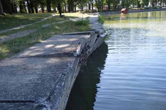 У львiвському парку розвалюється набережна озера Частина набережної у парку "Озеро Левандiвське" - в аварiйному станi. Дiлянцi загрожує зсув. ДП "Скнилiв-парк" звертається до мешканцiв з проханням не ходити бiля аварiйної частини берега, поки її не укрiплять. Мова про частину берега з боку заводу "Лiмо", що розташований поруч з озером. Реконструкцiю набережної планують розпочати невдовзi. 16 жовтня вiдбудеться тендер, на якому обиратимуть пiдрядника робiт.У ДП "Скнилiв-парк", яке є замовником робiт, розповiли, що перед тендером фахiвцi ретельно обстежили берегоукрiпну конструкцiю. За висновками технiчного обстеження, загальний технiчний стан пiдпiрної стiнки берега - аварiйний. Зокрема змiщенi залiзобетоннi блоки, деформованi та зруйнованi металевi стержнi з'єднання, просiдають та втратили проєктне положення тротуарнi плити."Неможливо безпечно експлуатувати берегоукрiпну споруду. Порушенi вимоги першої групи граничних станiв. Набережна є небезпечною через можливий зсув бетонних блокiв та грунту. Вiдтак необхiдно виключити перебування людей в зонi можливого зсуву", - зазначили у висновку техобстеження.Як стало вiдомо ProfiDOM.com.ua, "Озеро Левандiвське" - один з найвiдвiдуванiших у Львовi паркiв. Окрiм того, у водоймi, яка має досить велике плесо, мешкають пара бiлих лебедiв та дикi качки, яких вiдвiдувачi часто пiдгодовують. А отже, близько пiдходять до водойми. Тож реконструкцiя цiєї частини берега - це насамперед про безпеку вiдвiдувачiв.