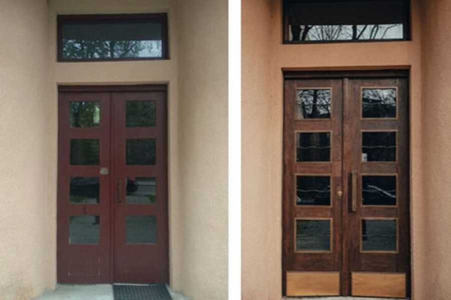 "Попереднiй стан дверей залишав бажати кращого - вони зазнали значних ушкоджень через затiкання води та численнi втручання. Крiм того, було втрачено оригiнальне засклення, декоративнi гратки та двернi ручки. Тому реставрацiя тут була масштабною", - розповiдає реставратор Василь Гришканич.