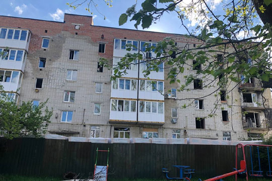 У Тростянцi вiдбудовують двi п'ятиповерхiвки У Тростянцi вiдбудовують два житлових будинки - за адресами вул. Благовiщенська, 53, та вул. Нескучанська, 9. Обидвi п'ятиповерхiвки зазнали значних руйнувань внаслiдок влучання боєприпасiв та пожеж. Пiд час окупацiї мiста в березнi 2022 р. росiйськi вiйськовi прицiльним вогнем обстрiляли будiвлi.