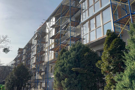 У Вишгородi капiтально ремонтують будинок У Вишгородi на вул. Грушевського, 1, вiдновлюють п'ятиповерховий житловий будинок для мешканцiв 64 квартир.