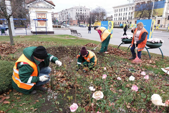 У Запорiжжi "Зеленбуд" поспiшає виконати сезоннi роботи до перших морозiв Окрiм щоденної рутини з прибирання випадкового смiття, очищення урн, згрiбання та вивезення опалого листа, працiвники КРПБ "Зеленбуд" поспiшають впоратися з запланованими роботами до зимових холодiв.