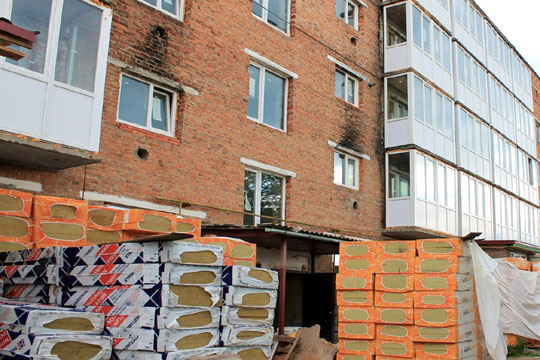 В Тростянцi вiдновлюють двi п'ятиповерхiвки У Тростянцi продовжується вiдновлення двох багатоповерхiвок за адресами: вул. Благовiщенська, 53Ю та вул. Нескучанська, 9. Житловi будинки були зруйнованi пiд час окупацiї мiста в березнi 2022 р.