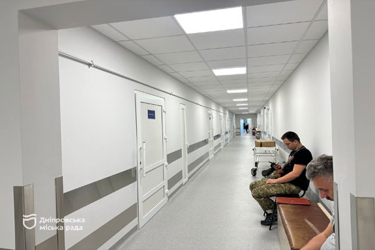 У Днiпрi оновили вiддiлення лiкарнi У Днiпрi продовжують оновлювати мiськi лiкувальнi заклади, аби було комфортно як пацiєнтам, так i персоналу. У мiськiй лiкарнi №4 закiнчили ремонт вiддiлення травматологiї. Тут оновили всi примiщення, зокрема й технiчнi. Йдеться про коридори, палати та манiпуляцiйнi кабiнети. Оновили стiни, улаштували стелю, замiнили пiдлогу та комунiкацiї, радiатори опалення, систему освiтлення.