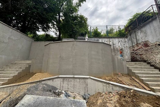 У Львовi ремонтують старовинну пiдпiрну стiнку зi сходами У дворi на вул. I. Франка ремонтують пiдпiрну стiнку мiж будинками №46-52. Як розповiдають у департаментi житлового господарства та iнфраструктури ЛМР, цю стiнку побудовали ще у 1904-1905 рр. Аварiйний стан споруди пiдтвердила мiська комiсiя з питань ТЕБ та НС, вiдтак на її ремонт видiлили кошти з резервного фонду бюджету Львiвської МТГ. Ремонтнi роботи розпочали у квiтнi, а завершити їх планують до середини липня.