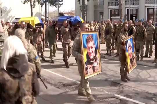 Попрощаться с братьями Бутусиными пришли тысячи людей. Погибших военных украинцы провожали, стоя на коленях.