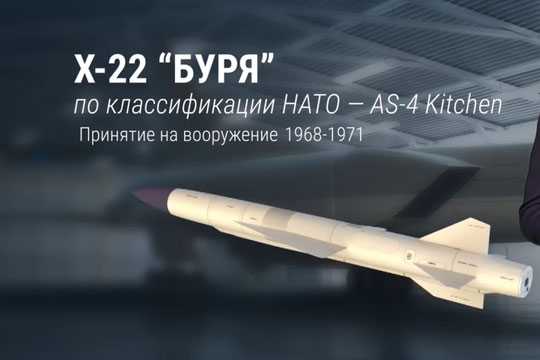 Сверхзвуковую крылатую противокорабельную ракету воздушного базирования большой дальности "Х-22" разработали для уничтожения американских авианосцев. Запускать ракету должен дальний сверхзвуковой бомбардировщик "ТУ-22М3". Он может выпустить сразу три ракеты с дистанции в 600 км. Цель они умеют выслеживать самостоятельно, но с большой погрешностью.