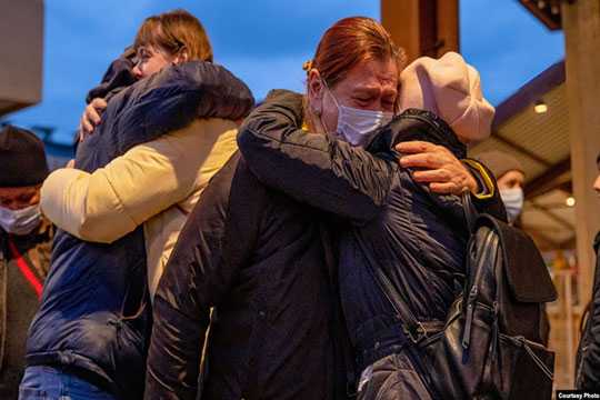 - Каждый день приезжал автобус и забирал людей в Днепр. Мы уходили в 5 утра, у нас горело все, двор горел... Автобусы привозят в общежитие для беженцев, там дается двое суток, чтобы прийти в себя. Представьте, у тебя было все: вещи, деньги, а потом ты в чем стоял, в том и ушел, в гари, саже, - вспоминает Оксана. - Все делалось по инерции: надо ехать - едем. Надо идти - идем. В Днепре везде блокпосты, огромные растяжки над мостами "Российский корабль пошел нах", противотанковые ежи, бензин по 100 грн. Продуктов мало в магазине. Хлеб отпускали по 2 буханки в руки. Там бомбят, здесь бомбят, приняли решение просто покинуть страну.