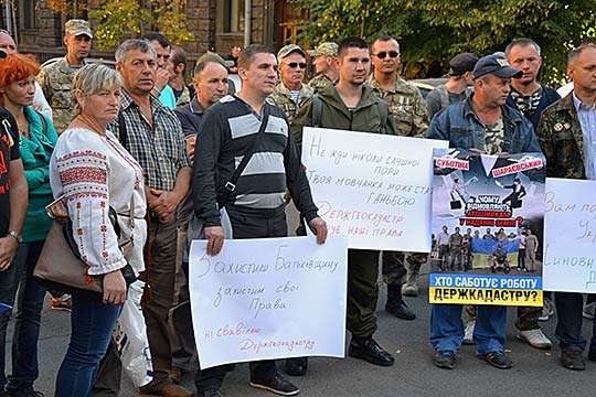 Ветераны не понимают почему на одном и том же земельном массиве действуют различные принципы и подходы Госгеокадастра. Именно эти проблемы заставили ветеранов АТО выйти на мирную предупредительную акцию протеста против действий руководителей Главного управления Госгеокадастра в Киевской области, а именно, исполняющей обязанности начальника управления Людмилы Приходько и ее заместителя Ольги Субботиной, а также против исполняющего обязанности начальника Управления Госгеокадастра в Обуховском районе Романа Шараевского.