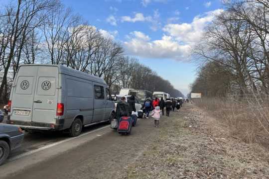 По дороге к границе вдоль всей трассы было много волонтеров, которые угощали беженцев кофе, чаем, картошкой, яйцами, шашлыками. В школе, где Дмитрий с женой остановились на ночлег, местные жители тоже устроили домашнюю кухню и накормили "первым, вторым и компотом".