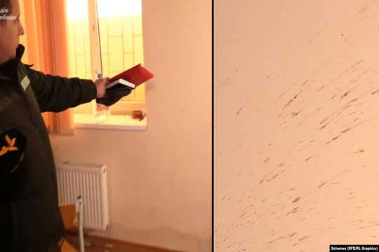 "Были осмотрены, изъяты образцы, будет проведена экспертиза. Но, судя по расположению стульев, они были связаны, здесь на двух стульях сидели люди - их так избивали, что кровь осталась даже на стенах", - рассказывает Кудь.