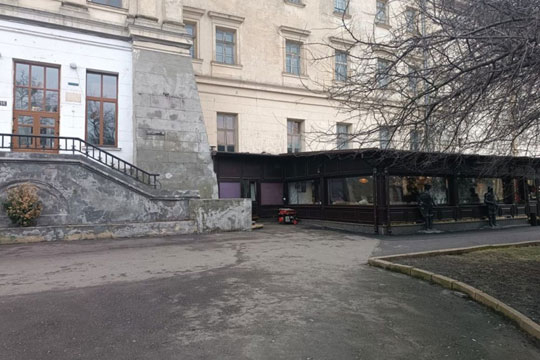 Львiв у судi бореться iз незаконними "наливайками" Львiвський окружний адмiнiстративний суд заборонив мiськiй радi демонтувати лiтнiй майданчик на пр. Свободи, 16-18, який загороджує вхiд до школи. Ресторан працює позаду Гарнiзонного храму та поруч iз школою №62.