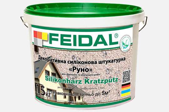 На отечественном рынке декоративную силиконовую структурную штукатурку «Руно» (Барашек) Silikonharz Kratzputz вывела компания Feidal.