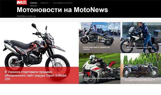 Кроме новостей, на MotoNews.com.ua можно найти тест-драйвы мототехники, обзоры и т.д.