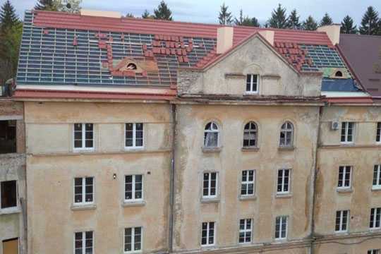 За iнформацiєю Залiзничної районної адмiнiстрацiї, на 70% виконаний ремонт даху на вул. Каховськiй, 29. Зараз тут вiдновлюють комини. Також пiдсилюють перекриття у квартирах.