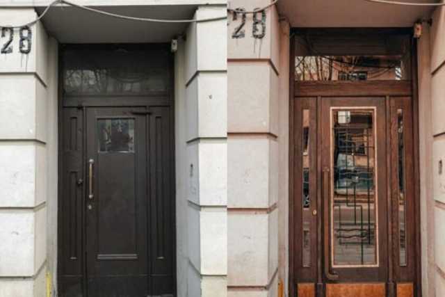 "У вiдновлених дверях важко впiзнати тi, якi були тут донедавна. Дверне полотно було пошкоджене вiд затiкання та механiчного втручання, а засклення, захиснi гратки на вiконцях та двернi ручки було втрачено. Нас чекало багато роботи", - розповiв Василь Гришканич, вiдповiдальний за реставрацiйнi роботи.