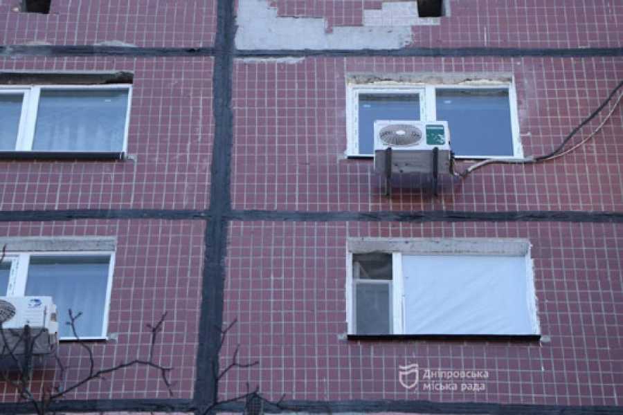 "Було пошкоджено 2 покрiвлi, вибито 93 вiкна, 29 дверей та 7 склопакетiв. Нинi лiквiдовано понад 80% пошкоджень. Де пошкоджено покрiвлю з технiчним поверхом будинку, вибухом змiстило частину лiфтового обладнання, - там також iдуть ремонтнi роботи. За тиждень закiнчать. Демонтаж частини даху вже завершено, зроблено шар гiдроiзоляцiї, щоб не проникла волога всередину квартир", - пiдсумував начальник органiзацiйного вiддiлу департаменту з питань самоорганiзацiї населення Днiпровської мiськради Владислав Макарець.
