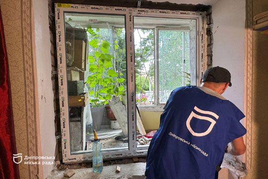У Днiпрi встановлюють вибитi ракетною атакою вiкна У Днiпрi триває встановлення вiкон у будинках ОСББ, що постраждали внаслiдок ракетної атаки рф 4 червня. Це 8 домiв, у яких пошкоджено чи вибито 77 вiкон, 24 дверi, 6 склопакетiв.