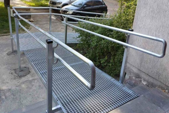 У Львовi встановлять металевий пандус у житловому будинку У житловому будинку на вул. Коломийськiй, 7, розпочато роботи з облаштування металевого пандуса для особи з iнвалiднiстю. Наразi саму конструкцiю вже змонтували, проте ще протягом двох тижнiв триватимуть ремонтнi роботи з благоустрою територiї бiля пандуса.