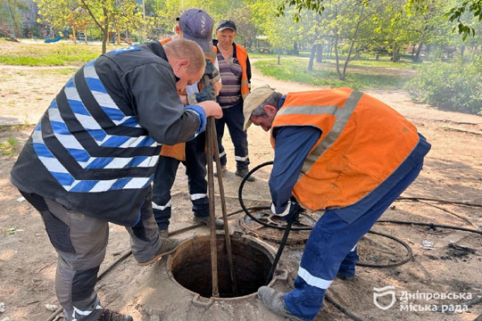 У Днiпрi каналiзацiйнi мережi забивають смiттям Мулосос, гiдромашина та бригада слюсарiв працюють за адресою вул. Ю. Кондратюка, 20. У цiй багатоповерхiвцi лiквiдують засмiчення каналiзацiйного колектору.
