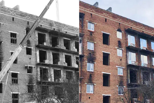 У зруйнованому будинку Тростянця встановили металопластиковi вiкна та балконнi дверi Продовжується вiдновлення будинка на вулицi Благовiщенськiй, 53, у Тростянцi, який згорiв пiсля обстрiлiв окупантiв. Будiвельники змонтували вiконнi та балконнi блоки, встановили перегородки з газобетону та несучi стiни, розпочали електромонтажнi роботи.
