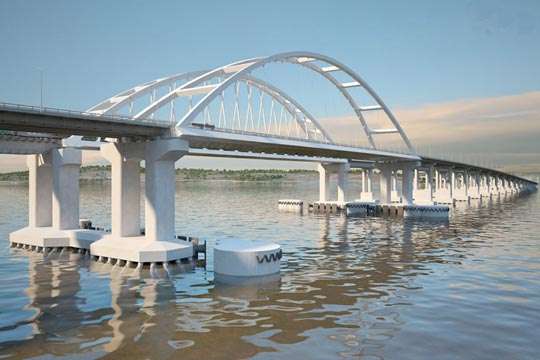 Причем, арки для автомобильного и железнодорожного участков моста, внешне, практически, одинаковы. При этом, автомобильный арочный пролет будет весить 4,5 тысячи тонн, а железнодорожный – на тысячу тонн больше. В нем больше элементов, которые позволят обеспечить необходимую жесткость и устойчивость пролетного строения к деформациям¬ при движение тяжелых грузовых вагонов.