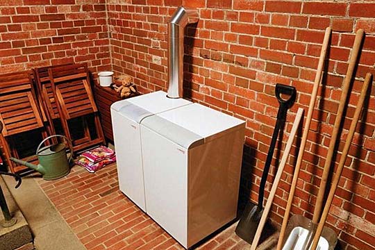 Такие котлы могут обогреть большую площадь обладая довольно высоким коэффициентом полезного действия. Однако, для их установки требуется отдельное помещение с наличием вытяжки и емкость для горючего не менее, чем на две тонны.